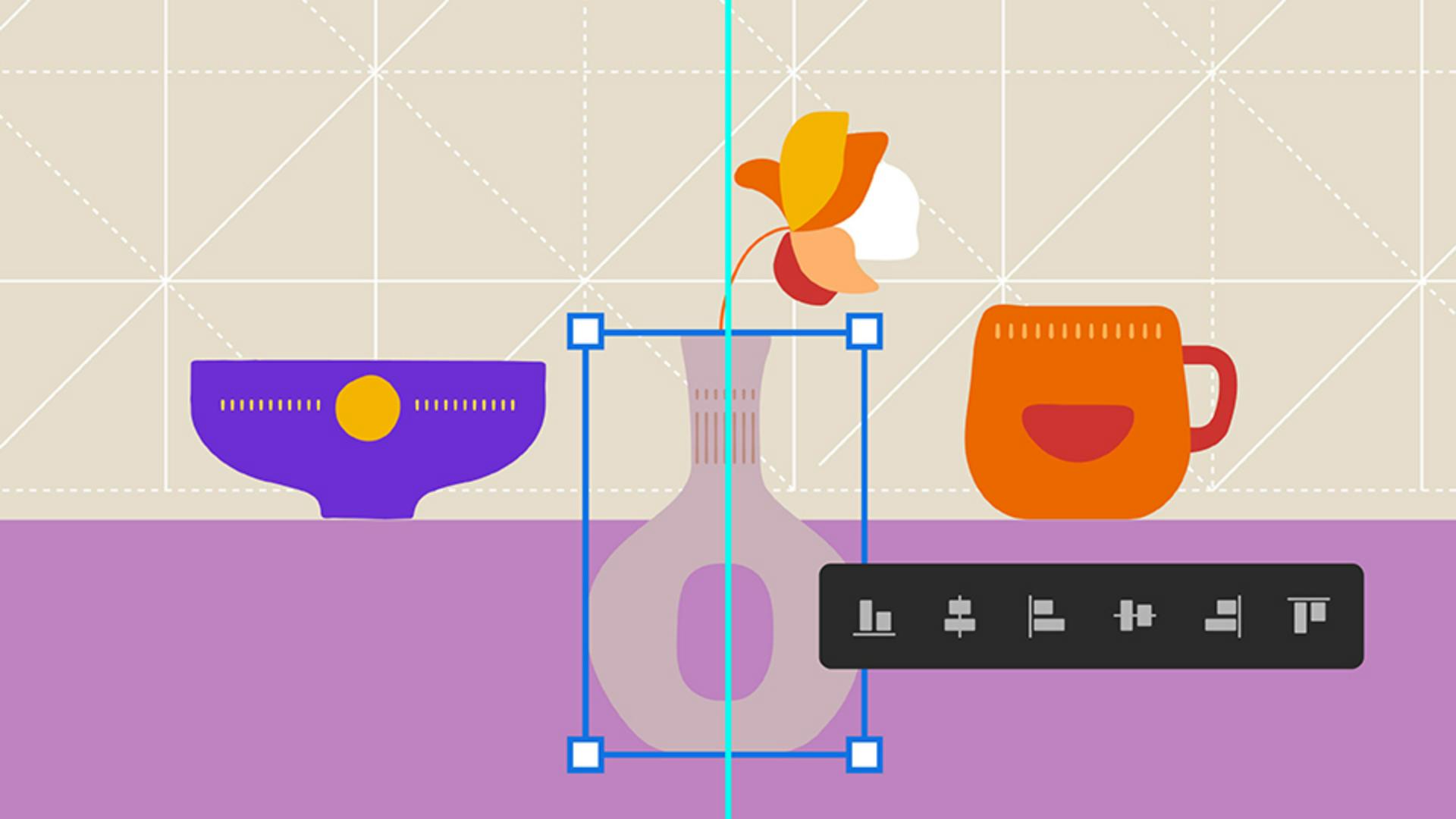 Align and position objects visually by dragging using magenta-colored Smart Guides, or try various Align options to precisely align objects.
