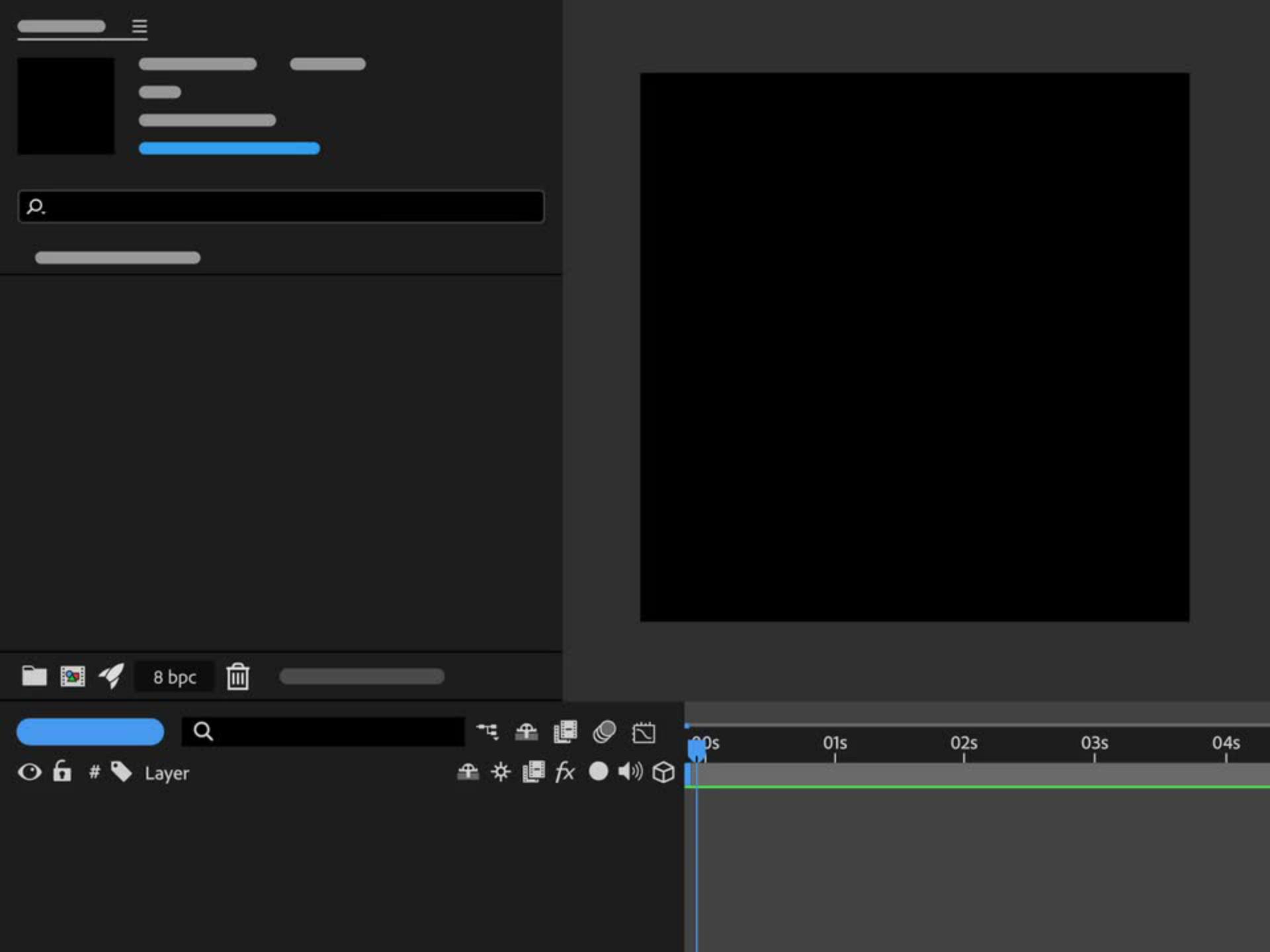 In After Effects, choose File > Import > File, and select the Illustrator (.ai) file and the GLTF folder. From the Import dialog box, select All Acceptable Files, Composition - Retain Layer Sizes, and click Open. Double-click the composition in the Project panel to add the layers to the timeline.