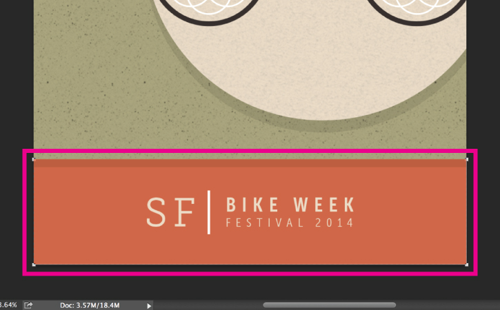 Notice that the shape path becomes visible, indicating that you have selected the path. In the Layers panel, the shape layer for the orange rectangle, the "Footer" layer, appears in blue, indicating that the layer is active. If you don't see the Layers panel, go to Windows > Layers.
