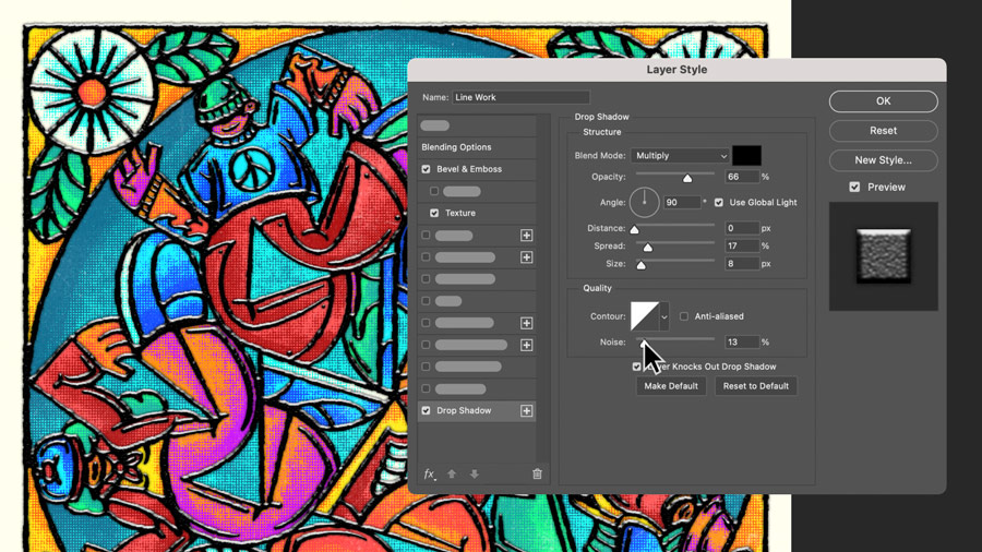 And then I added a drop shadow as well onto the line work with a bit of noise.