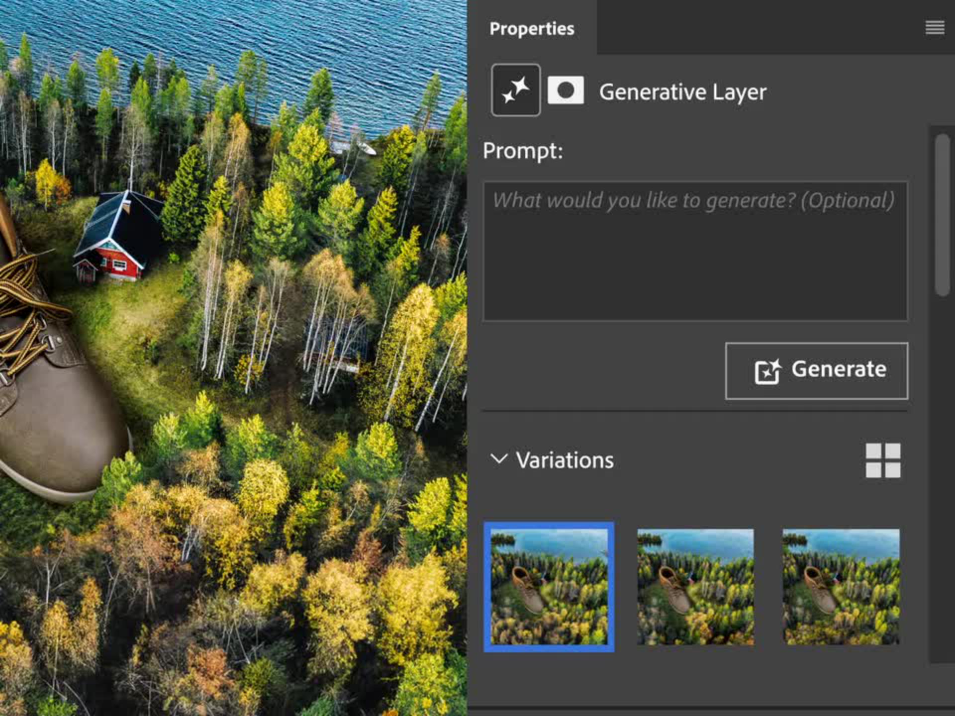 Cycle through the results in the Variations section of the Properties panel and select the one you like best. If you decide later that you prefer a different option, select the generative layer to see the variations again.