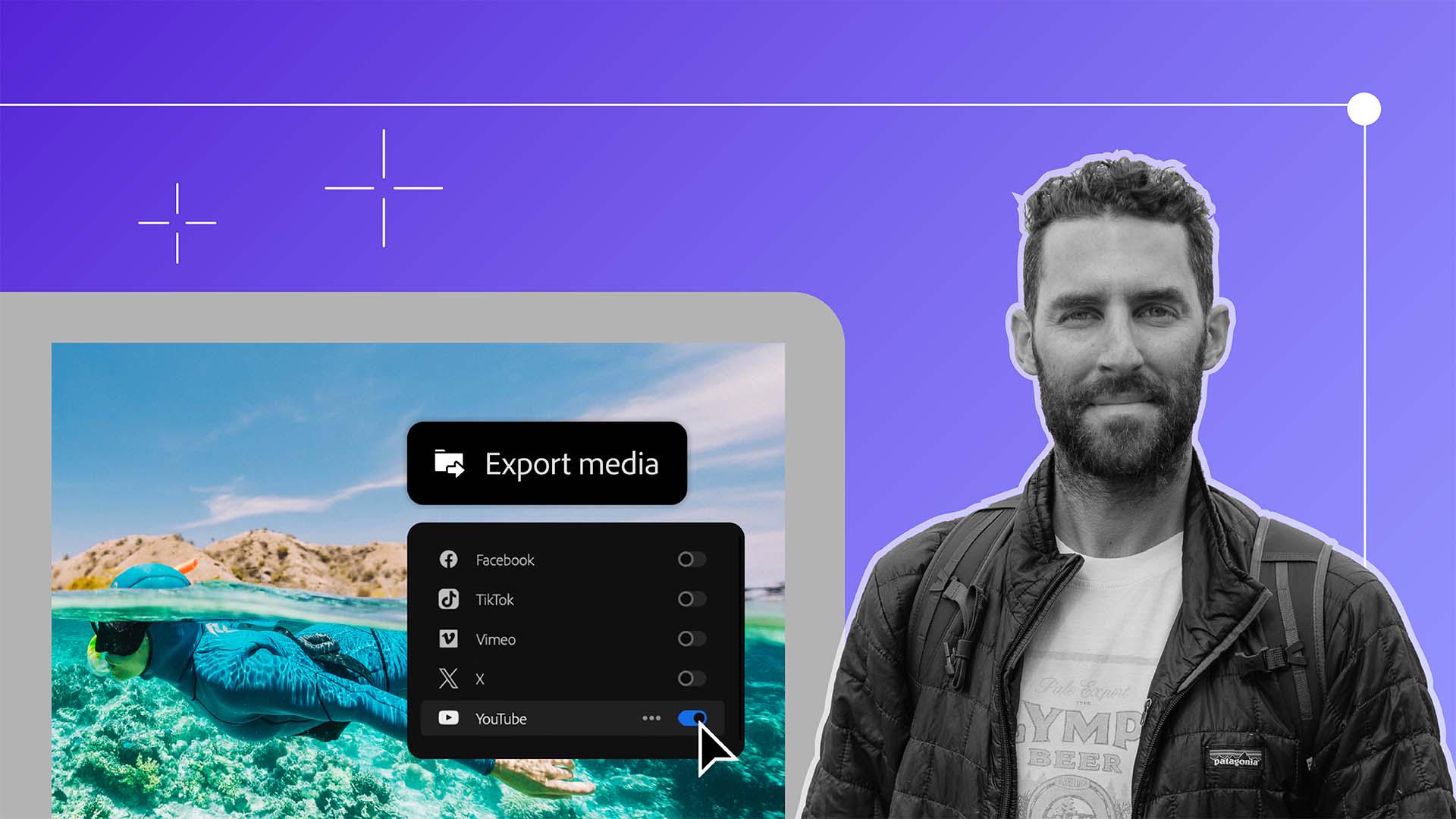 In Export mode, enable YouTube upload in the sidebar. Sign in, then add your Title, Description, and any extra settings like Playlist or Tags. Add a custom thumbnail if you'd like, then click Export to upload your video directly. Repeat for any other platforms you'd like to publish to.