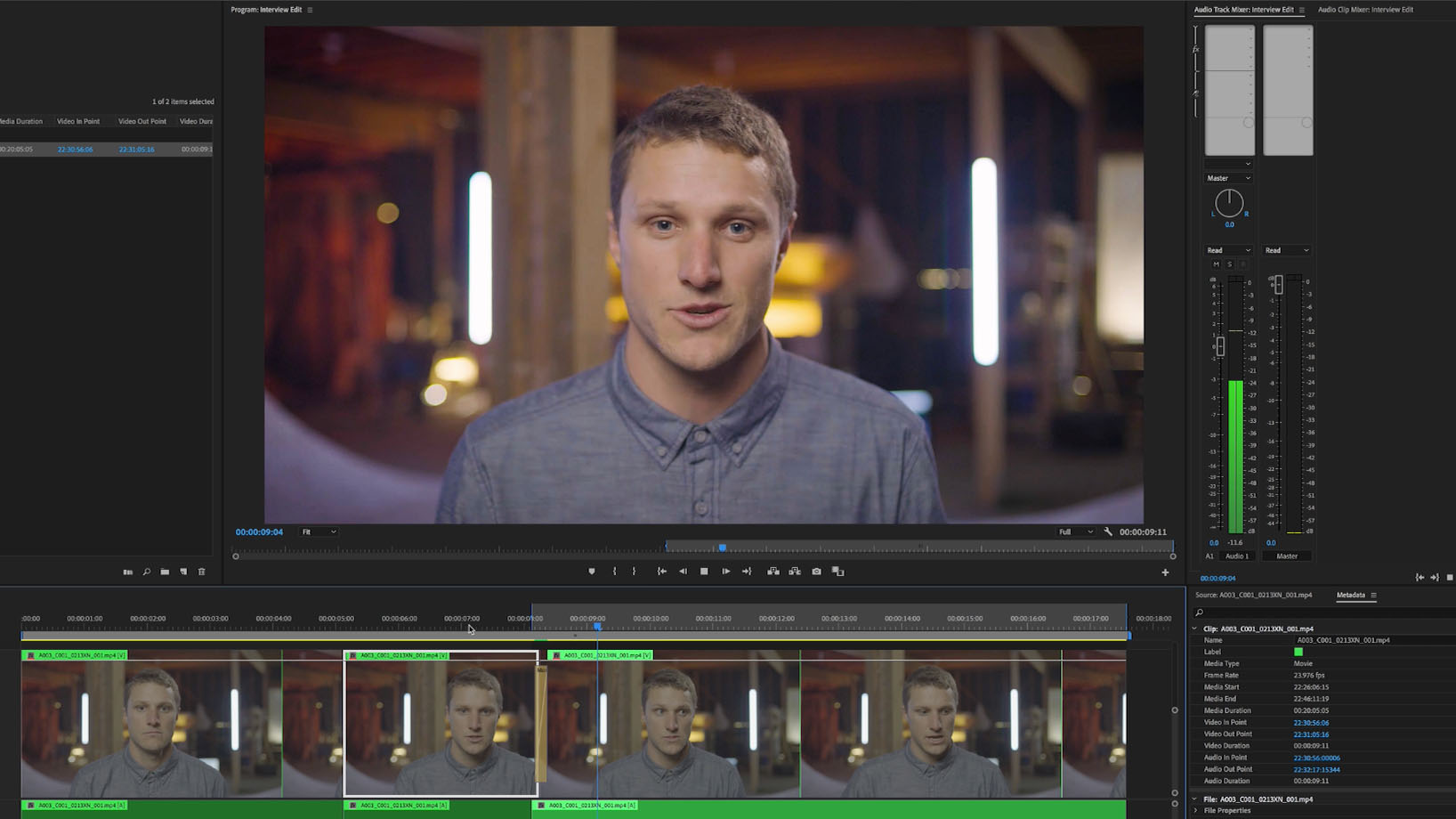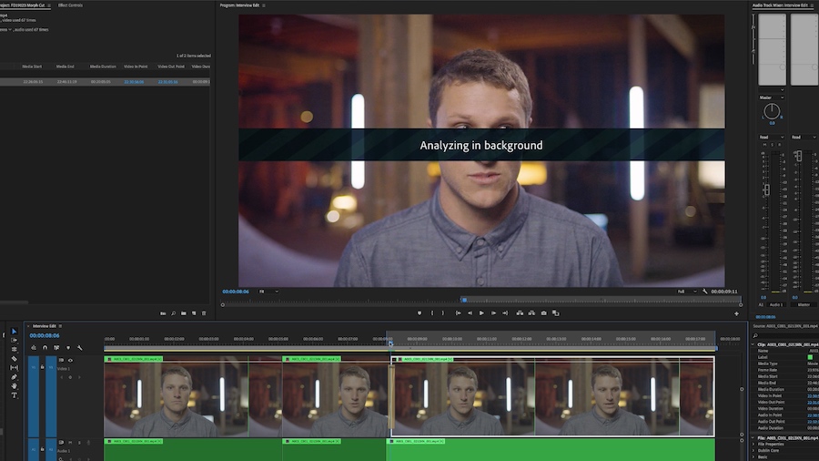 Morph Cut in Adobe Premiere Pro, powered by Adobe Sensei, smoothes out edits in talking head sequences, for quicker and easier polished interviews.