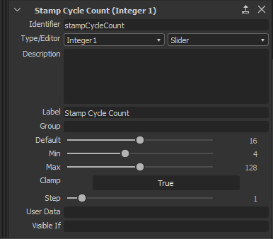 Fortunately, we have a way to communicate the Stamp Cycle Count number to the Substance graph. By default Substance Painter creates its own, unless it is defined by the Substance graph. So we are going to add the parameter in our graph :