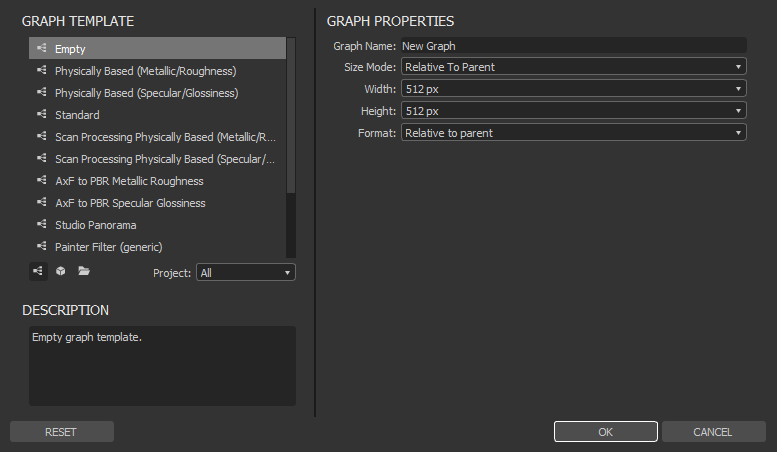 Let's start by creating a new empty graph in Substance Designer :