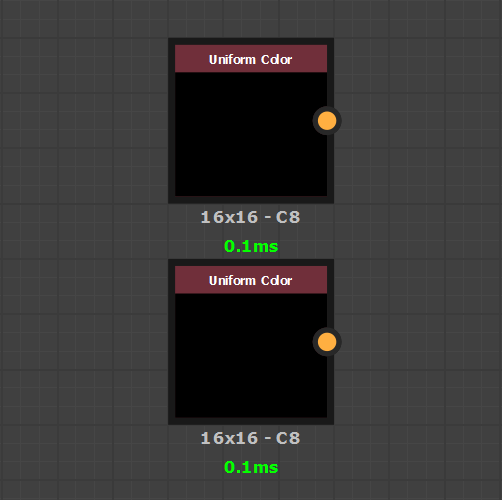 To create our gradient, we need at least two colors to blend between. By default Uniform Color nodes have their resolution set as "Relative to Parent" which is a bit overkill. To ensure good performances it is best to switch them as "Absolute" and use a 16x16 pixel resolution instead :