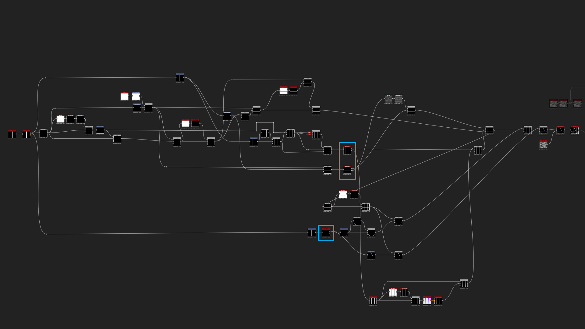 Even if the graph looks a bit scary and crazy, it is actually fairly simple. Mostly there are Transform 2D's that create the house wall pattern and masks made using Histogram Scan. And since we now have the Wood Pattern generator, we just need to plug the square planks shapes into the generator and end up with our wooden beams.
