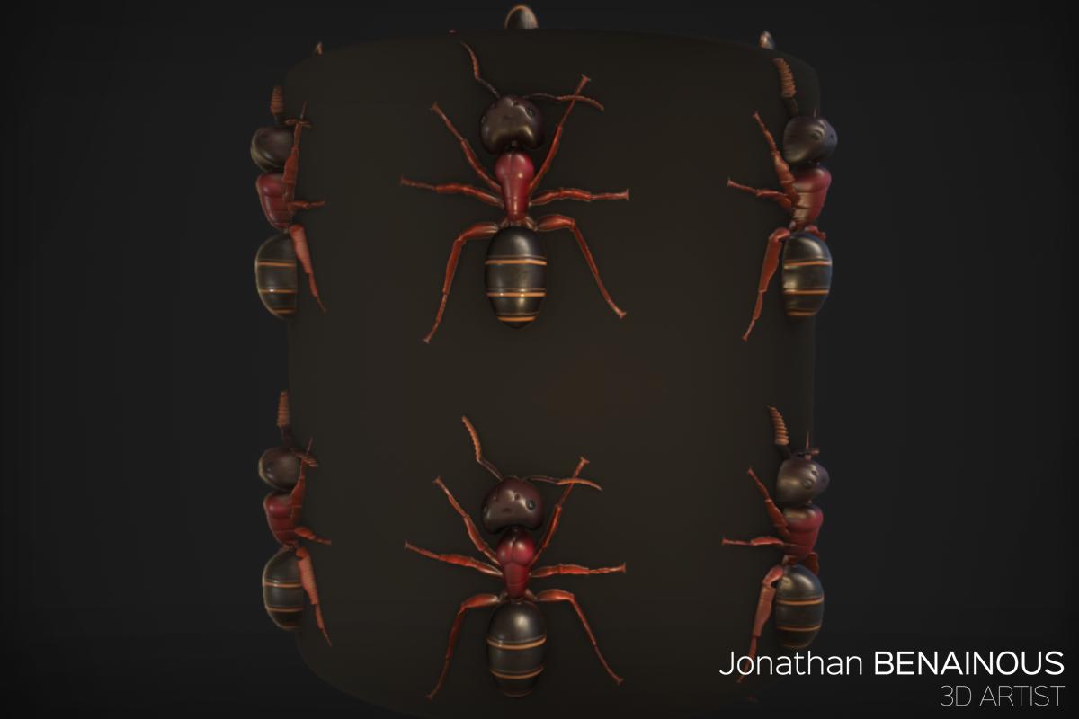 As an extra detail pass, I added sparkle effects to my sand, large and small pebbles, wood pieces, and ants fully made in Substance Designer.