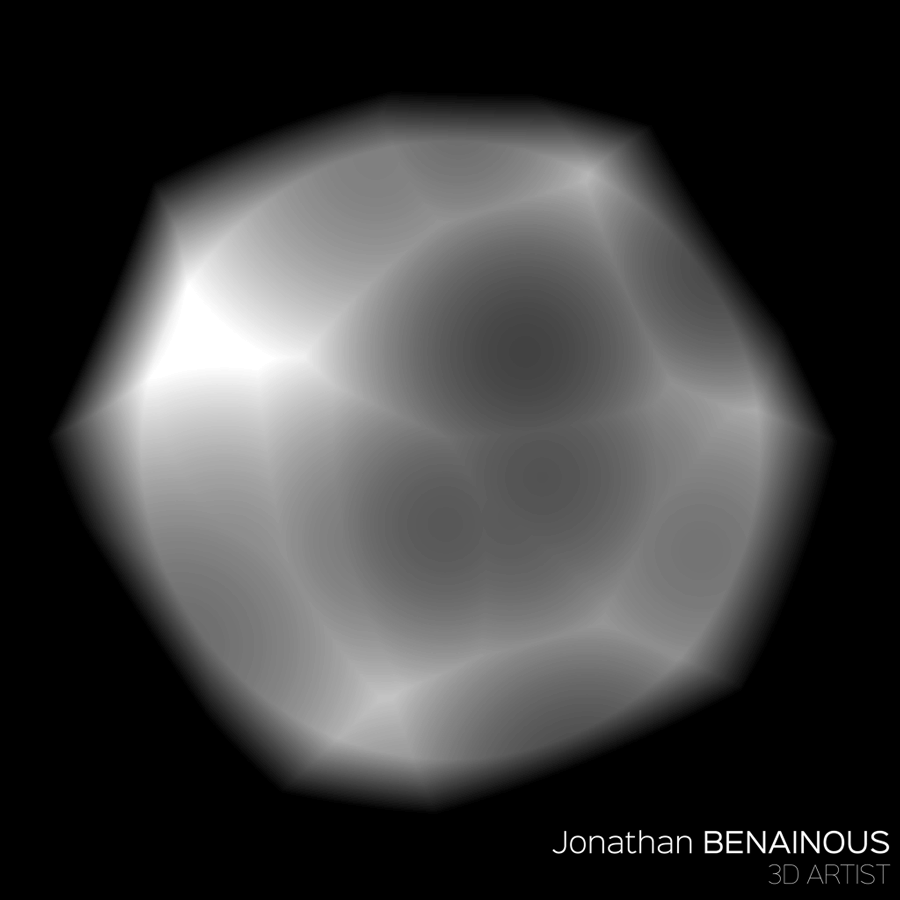 I inverted the result to create a wavy organic effect. I reused a paraboloid to crop the main shape of my rock.