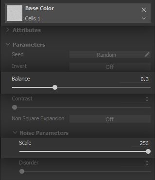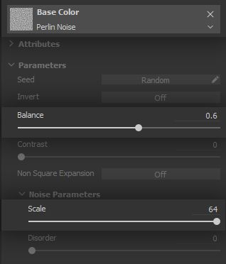 Such a dense noise can quickly become an opaque membrane that covers all the model, even at high contrast values. To mitigate that and ensure we get the small dots we need, we bring the Balance value down a notch.