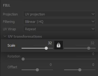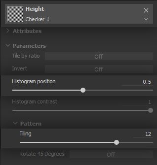 We are going to use several little tricks over the course of this project, starting now: we can make a convincing impression of a criss-crossing thread structure using texture Filtering to our advantage. We set up a Checker pattern in the Layer height, with high scale and tiling values to make it very dense.