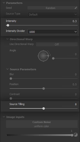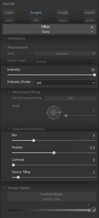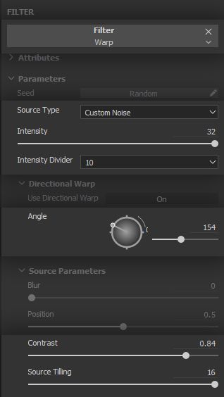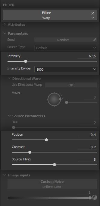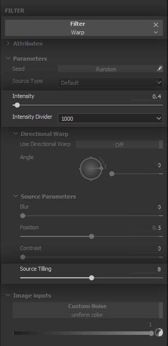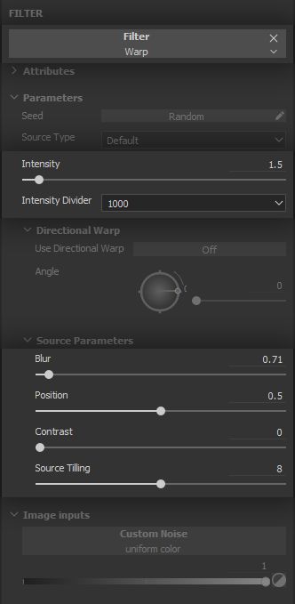 The fuzziness being very fine, we use high intensity divider and tiling for the warp Filter, with a low overall intensity value.