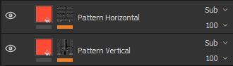 The set up is nearly identical to the main stripes, however this time we want to remove parts from the mask we built, thus we set the blending mode to Multiply or Subtract depending on which set of alternating stripes you want to remove. The reason for that is the following: