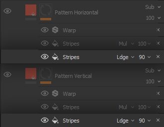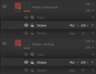 There is a noticeable hierarchy to the stripes, which are separated by colour, continuity, thickness, density and any combination of those characteristics. Identifying these characteristics is an important step of the project, as it will inform our choices in the structure of the Smart Material to promote flexibility. In this case, we understand it is appropriate to separate these stripes into different Layers, and have the hierarchy built directly into the structure of our Filters and Generators. Therefore, we create different * Fill* Layers for separate sets of stripes - the name and number of sets is completely arbitrary.