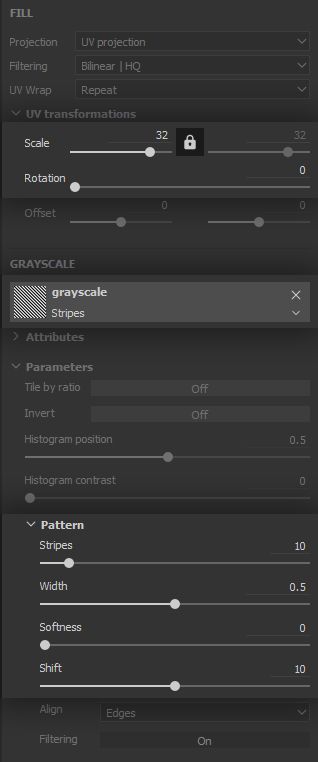 Therefore we create a ‘Fill’ Layer with colour and height channels enabled, and we replicate here the colour of the base fabric . Admittedly, the clumps could also have the same colour as the patterns, but we go for a simple setup as it will drive the impression quite efficiently regardless. Surprisingly often, texturing artists aim for verisimilitude rather than straight realism, as the former can be more interesting than the latter while remaining quite believable for the audience. The placement of the clumps will be driven by a mask, so we start with a black mask and will build visibility from there, as we did for the stripes.