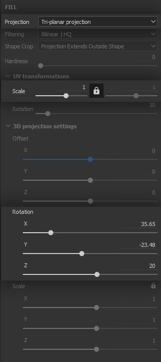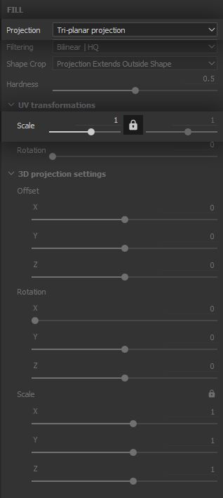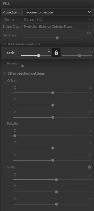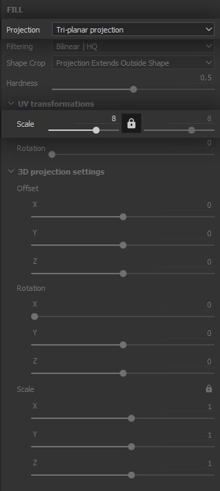 As we have done for the clumping, we set the ‘Clouds 2’ Fill Effect to the ‘Tri-planar’ projection mode, in order to break up symmetry and tiling, and further support the chaotic aspect of this type of wear.