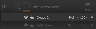 Of course, not all of the fabric will be impacted in the same way along the seams, so we break it up by multiplying a * Clouds 2* Fill Effect Layer set to a Tri-planar projection to alleviate symmetry and tiling.