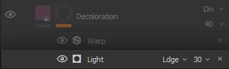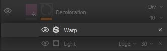 Replicating the thought process we used for breaking up the Light Generator Effect, we want to adapt the effect a bit to the threading structure and fuzziness of the fabric, by applying a * Warp* Filter Effect on it.