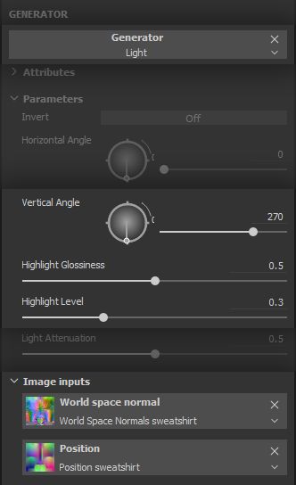 This will be adding to the visible portions of the mask, so we set it to the*** Linear Dodge (Add)*** blending mode. The controls are quite intuitive: set a horizontal and vertical direction for the light source, adjust it highlight propagation and we are done. Again, notice the mesh maps being leveraged in this generator, at the bottom of the parameters panel.