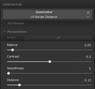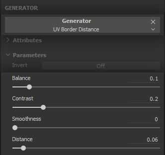 We use the * UV Border Distance* Generator Effect to isolate the borders where our seams are…