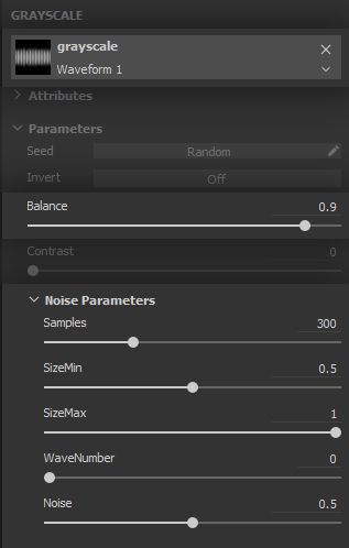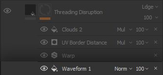 Now let us get our hands dirty on the mask, for this is where the trick happens! We need to create an * impression* of threading coming loose in chaotic fashion, sometimes keeping the criss-crossing in and sometimes not. Meet the Waveform 1 pattern. The way the waveform is implemented relies on repeating fading lines with varying lengths. This is the functionality we need to start building the loose threading. Let us set this pattern up in a * Fill* Effect to start our work on the mask.