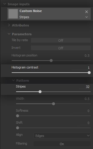 The Stripes pattern provides very useful options for controlling the number and width of the stripes, as well as their softness . These options can be combined with the rotation and scale parameters of the Layer for further control.