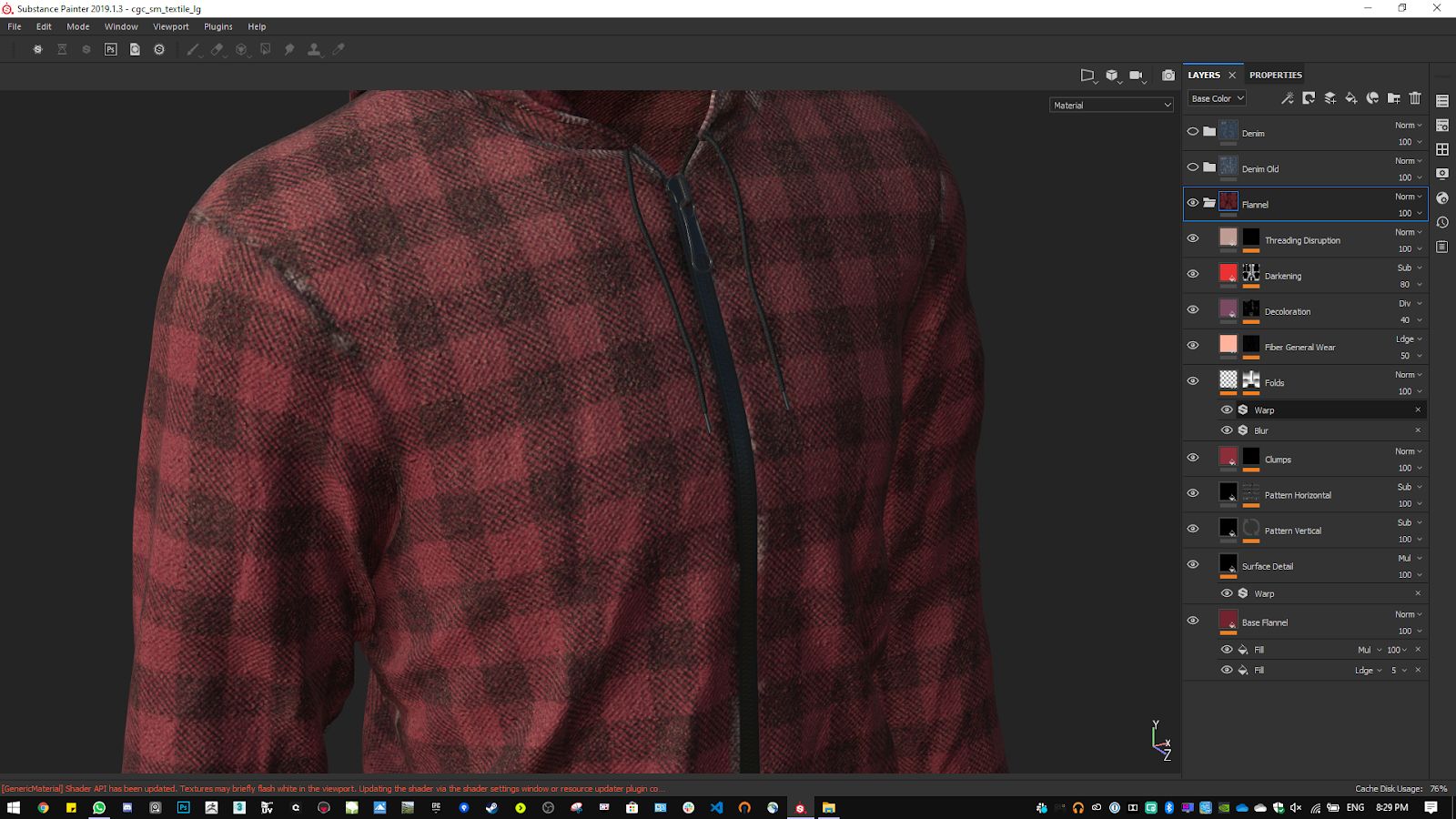 While gathering reference, we must make sure to cover the relevant aspects of what makes soft flannel recognisable and accurate , from the overall thread structure and commonly used patterns, to the way the threading gets loose and discoloured as the cloth gets worn out. As we progress through the project, we will take a closer look at some pieces of reference when they are relevant to the step at hand.