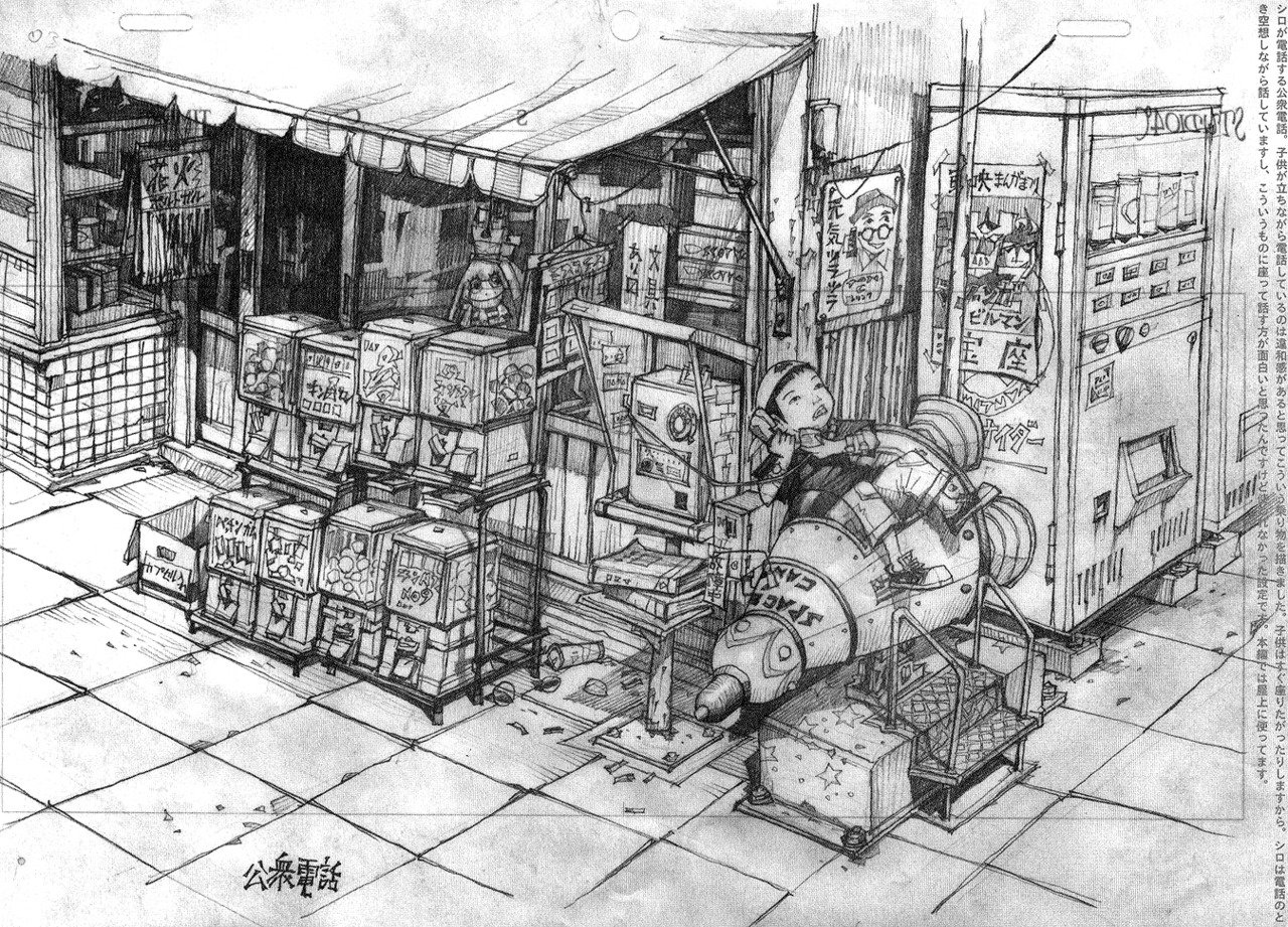 To do this I relied on the sketch above found on this amazing Tekkon Kinkreet artbook