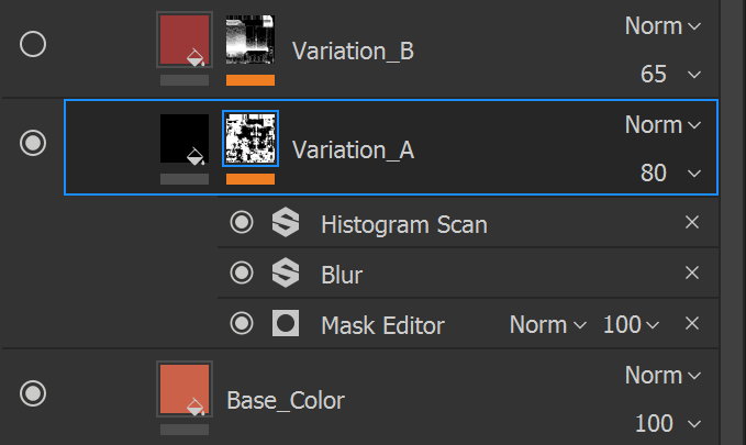 Most of the time this setup gave me good results. Don't forget that you can tweak every Procedural texture available in Substance Painter. Random Seed, Balance, Contrast and Noise Parameters allow you to create an infinite amount of variations. In your procedural shelf, the Thumbnails represent only one of the possible variations so be curious and tweak it, you might be surprised.