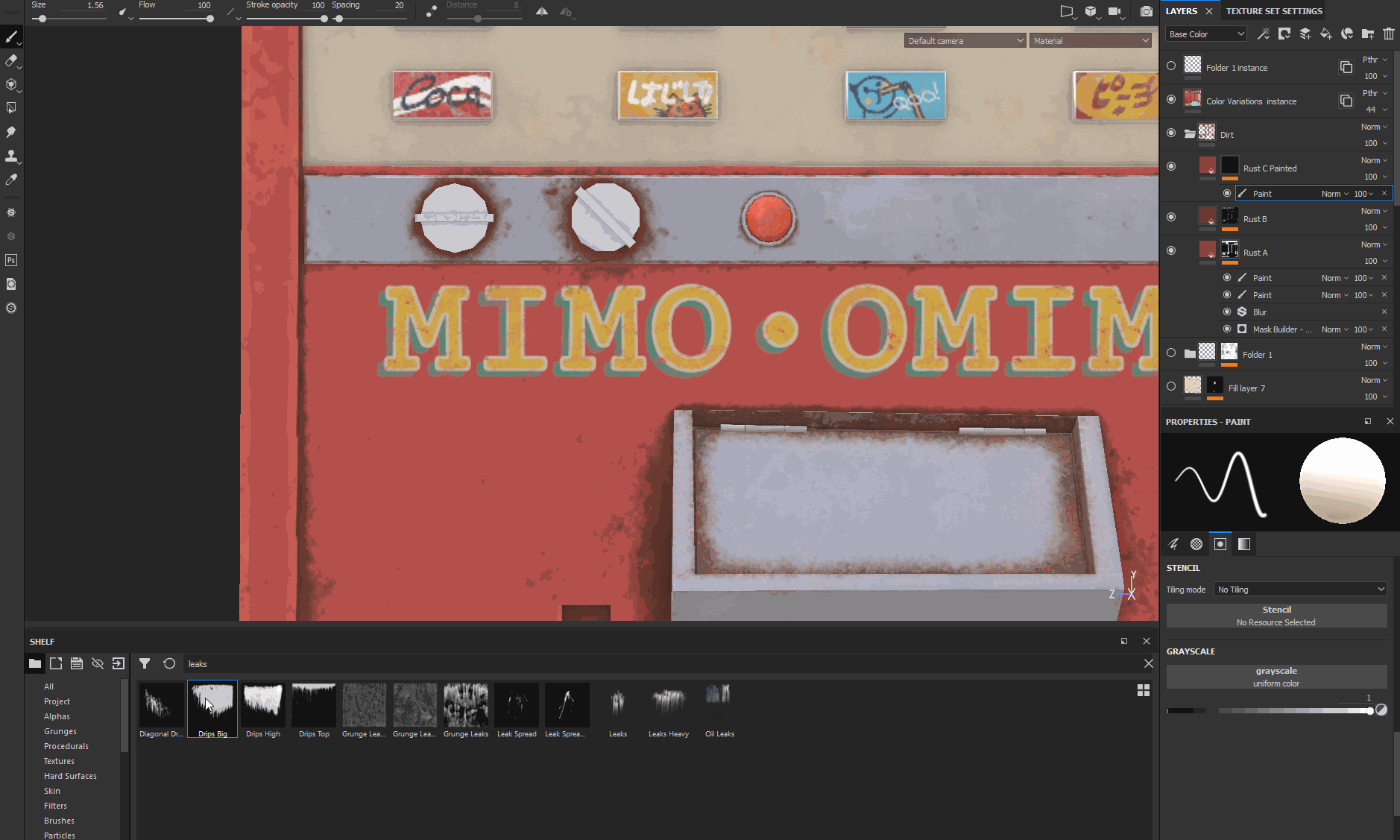 Now for the specifics details such as the Rust leaks, I will add a hand-painted layer. As an artist, I want to paint my details where I want and not be influenced by an automatic generator. For hand painting, you can use: