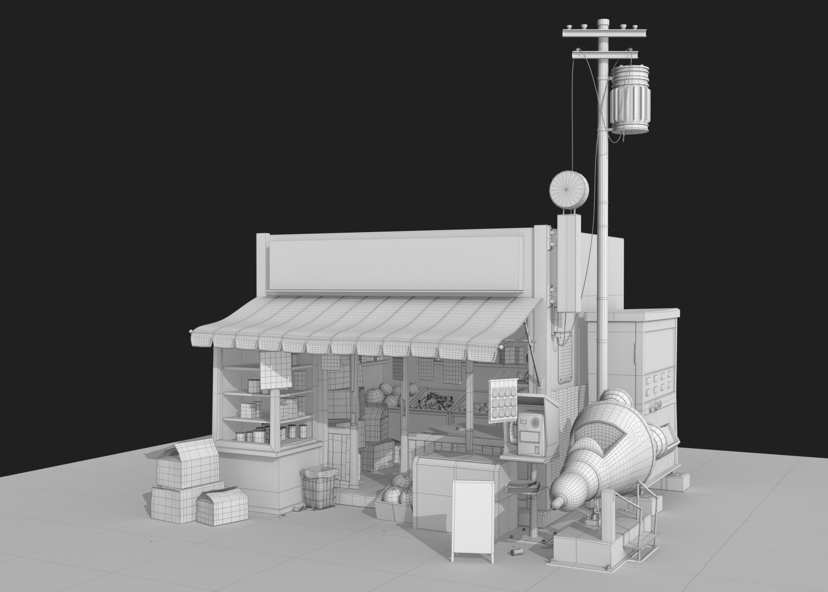 At the end, I usually apply a Lattice deformer on my modeling which slightly "breaks"the geometry’s regularity, and therefore comes closer to the charm of hand drawing.