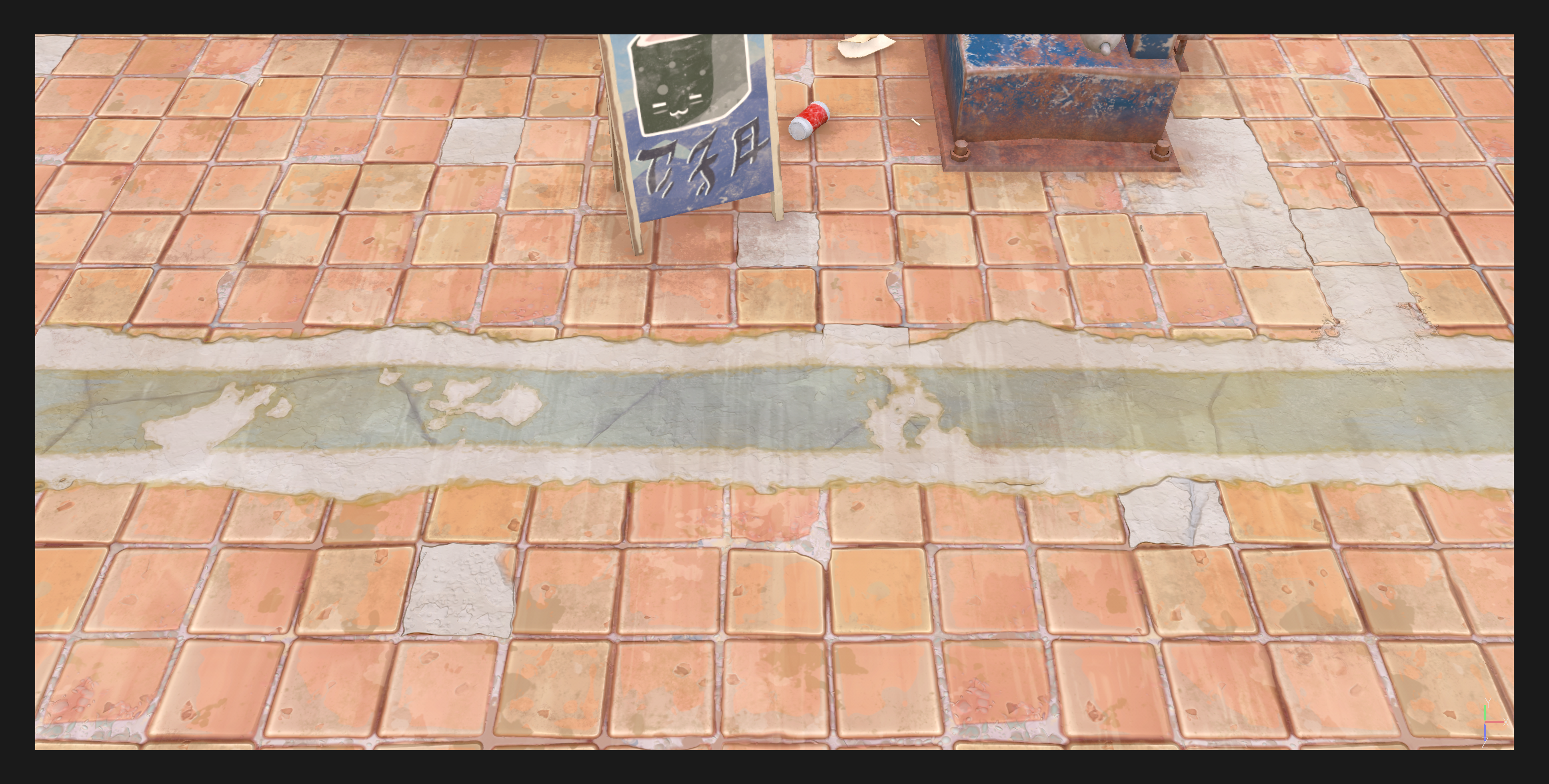Luc Chamerlat: Has created three Materials, Wood, Gound, Tiles and two custom stylized Grunges with Substance Designer.