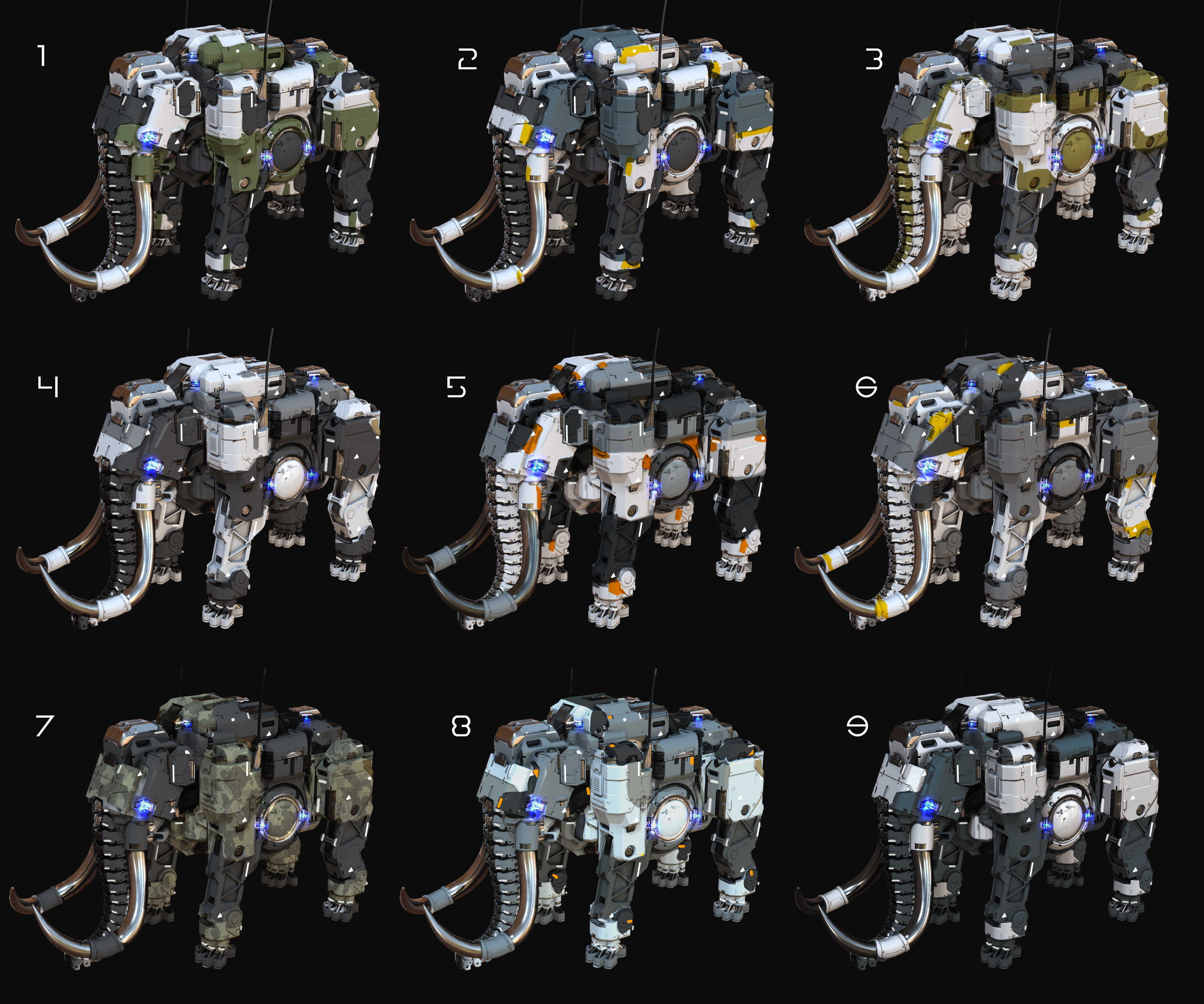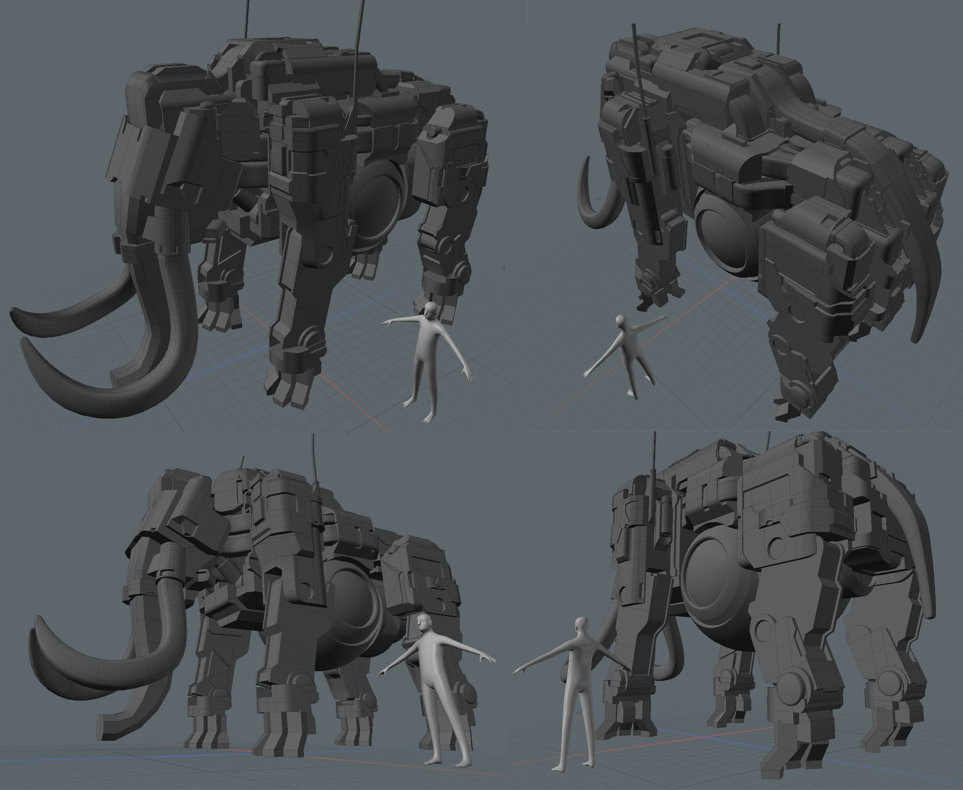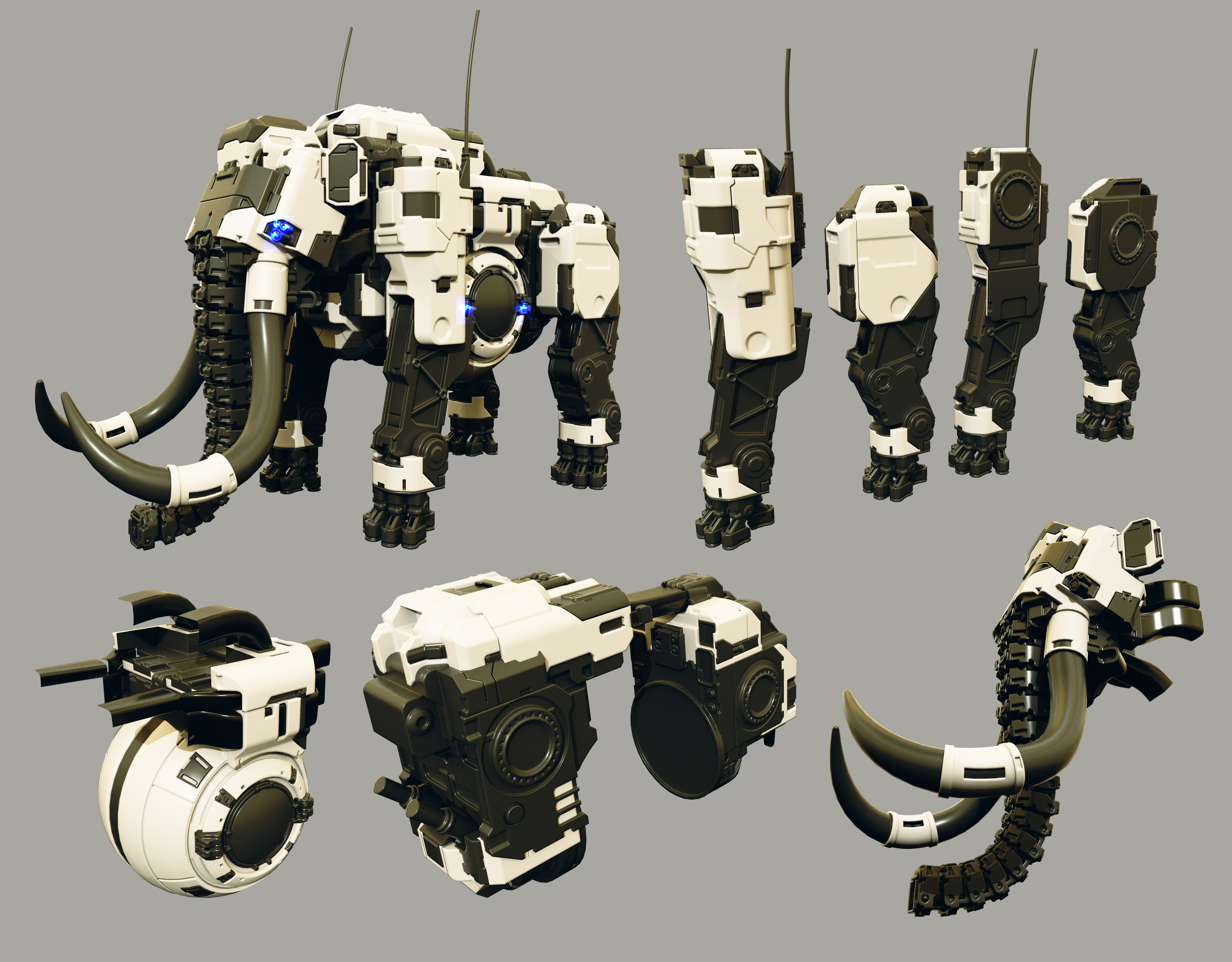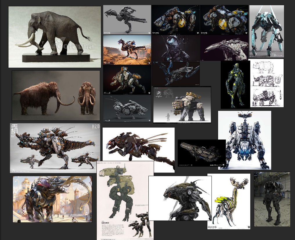 Before starting work, like any artist, we create a mood board with cool artists’ references for inspiration. The images were collected in PureRef - this helps form the model's initial image. The starting point for the Mammoth's style was the Horizon: Zero Dawn game, but during the work process the style changed, the forms became coarser, and new elements were added.
