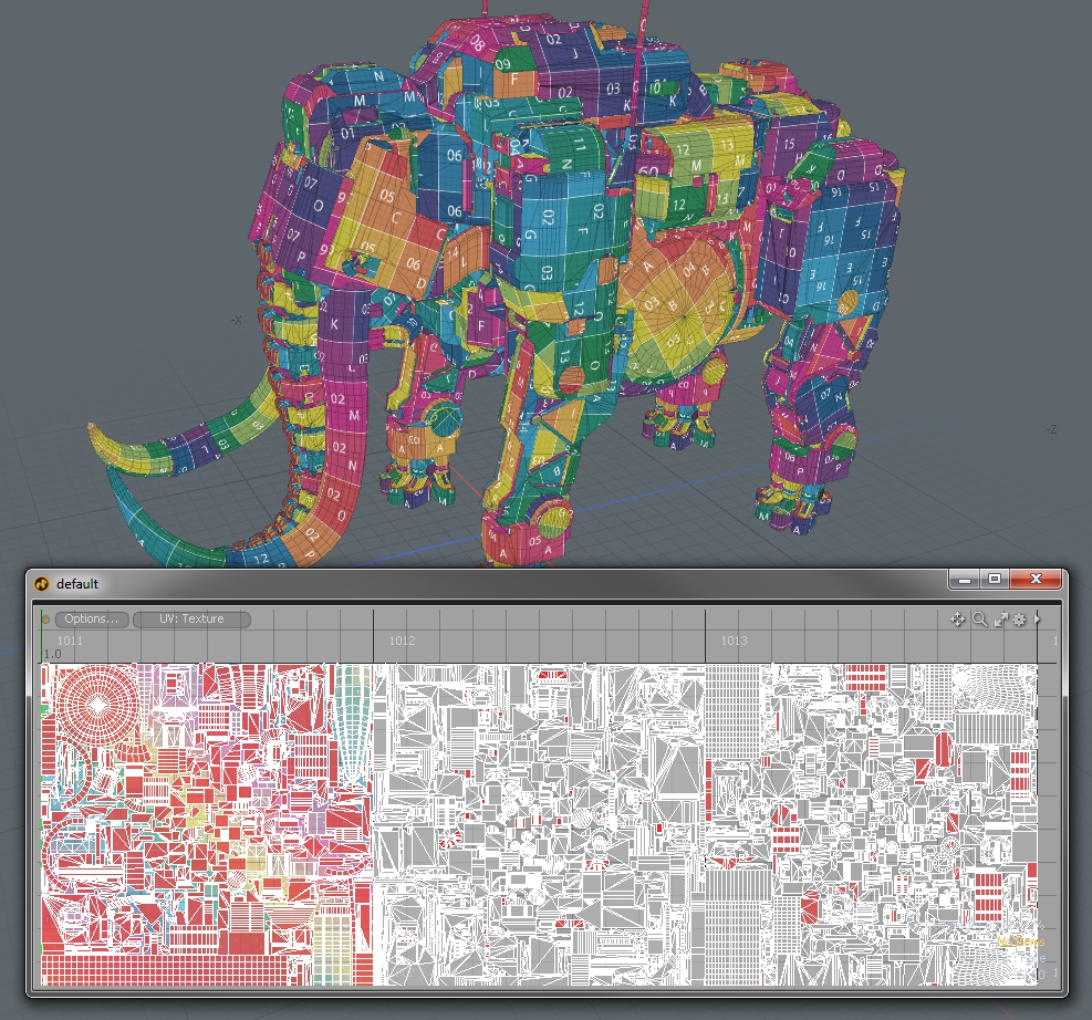 We normally do an unwrap in UV Layout - in this program, the process is fast and visually simple. To increase the details, we chose to make three texture sets (head, legs, body) and test the UDIMs in the Substance Painter. UDIM is a unique unwrap square with an identifier that can be converted into a texture set in SP. In this case, there were three of them (1001, 1002, 1003).