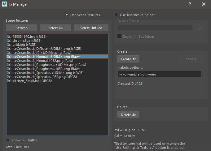 Please note this workflow is meant to be used for rendering with tx files only. I never work with anything BUT tx files. They render 10 timess faster and in the commercial world, time is everything! I’m continuously updating my tx files for rendering so this is the workflow for tx files only! Be sure to flush your texture cache if you are recreating tx files.