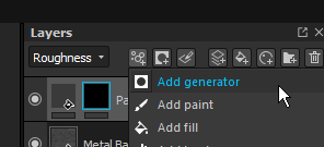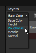 Now switch the channel mode at the top of the Layer Stack from Base Color to Roughness :