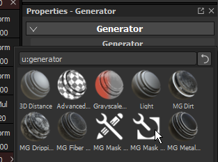 The properties window will now display the parameters for the generator, which is empty by default. Click on the button to open a mini-shelf and choose the "Mask Editor" generator :