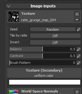 Let's start by adding a grunge noise, which can be done by scrolling down the properties window until we reach the "Image inputs" section.