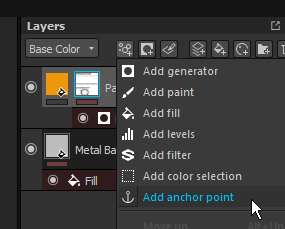 To create the peeled effect around the holes of the paint surface we need to access the mask of the paint layer via other layers. This is possible withanchors which allow to create links between element of the layers stack.
