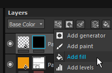 Create a newfill layer in the layer stack (by using the button at the top of the layer stack) :