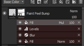 Create a new fill layer named " Paint Peel Bump ". Enable only the roughness and height channels with the following values :