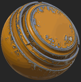 Now that the paint has been created it covers all the surface, which we don't want. We now just need to mask it to reveal the metal underneath near the edges of the geometry.