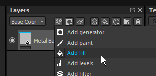 Now that the metal has been created, we will add some details on the surface to make it more interesting, we will use a grunge noise to add variations in the roughness. Start by adding a fill effect on the fill layer :