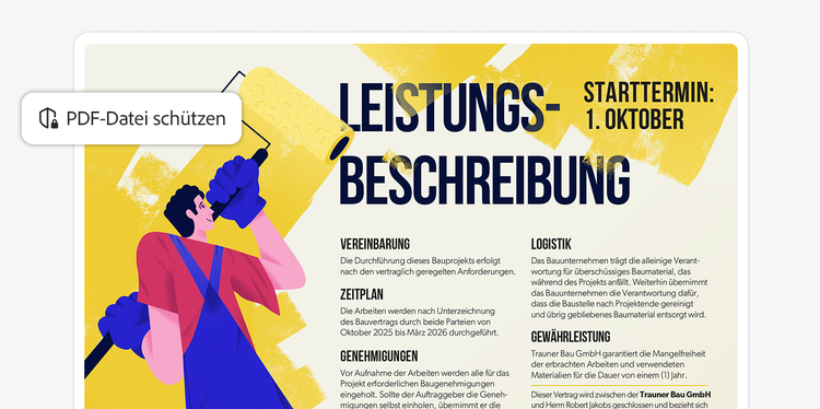 Bringt euer Unternehmen voran – mit der bewährten Lösung zum Erstellen, Bearbeiten, Unterzeichnen und Teilen von PDF-Dateien und Verträgen. Zusätzlich sorgen Automatisierungen für beschleunigte Prozesse und schnellere Genehmigungen und leistungsstarke KI-Arbeitsbereiche erleichtern die Zusammenarbeit.