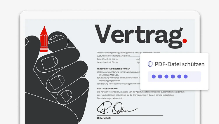 Sorge mit „PDF schützen“ dafür, dass niemand deine Inhalte kopieren, bearbeiten oder drucken kann.