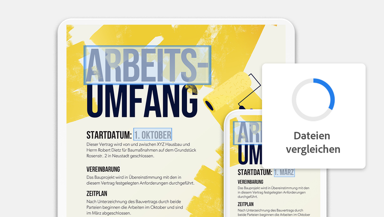 Mit dem Werkzeug „Dateien vergleichen“ findest du schnell und einfach Unterschiede zwischen zwei Versionen derselben PDF-Datei.