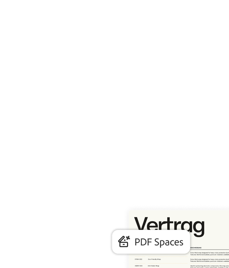 Sichere dir vollen Zugriff auf die ultimative Produktivitätslösung. Bewährte PDF-Tools, intelligente KI-Erkenntnisse und benutzerfreundliche Designtools von Adobe Express – alles vereint in Acrobat Studio.