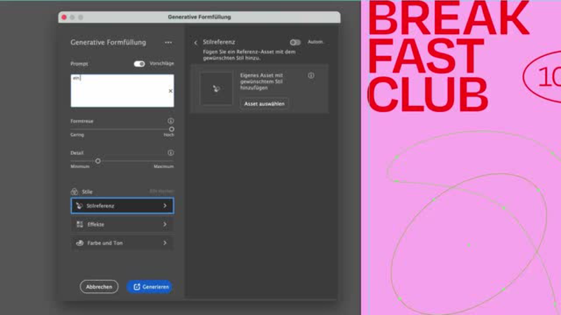 Sobald die Basis steht, kommt die generative Formfüllung zum Einsatz. Mit klar formulierten Prompts kannst du die KI gezielt steuern und festlegen, wie deine Formen gefüllt werden sollen. Je präziser und detaillierter deine Anweisungen sind, desto treffsicherer fallen die Ergebnisse schon beim ersten Klick aus.
