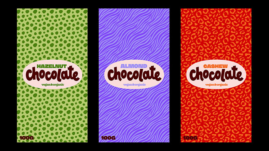 Nachdem das Muster für die erste Schokoladentafel fertig ist, kannst du weitere Varianten ausprobieren. Rosas Idee für die zweite Tafel lautet: „Organisches Zebrastreifen-Muster, an Fell erinnernd“. Nutze hierfür zur Abwechslung die Lila- und Brauntöne aus der vorgegebenen Palette, um harmonische Kontraste zu erzeugen.