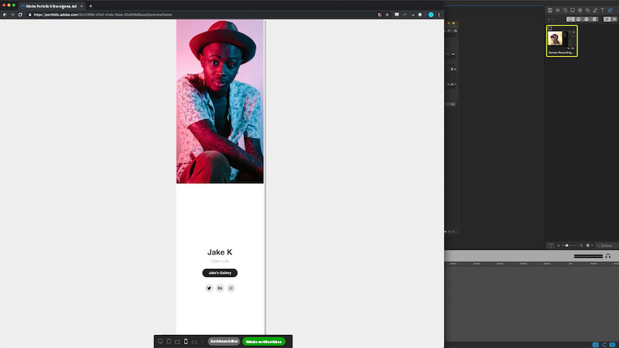Klicke auf Vorschau, um zu sehen, wie dein Portfolio auf verschiedenen Bildschirmen dargestellt wird. Wenn du mit dem Ergebnis zufrieden bist, klicke auf Website veröffentlichen.